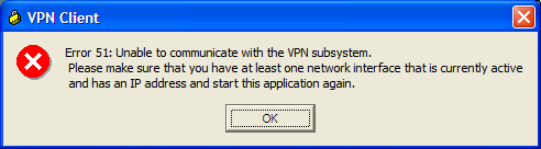 Beskrivelse: Ude af stand til at kommunikere med VPN-subsystem.